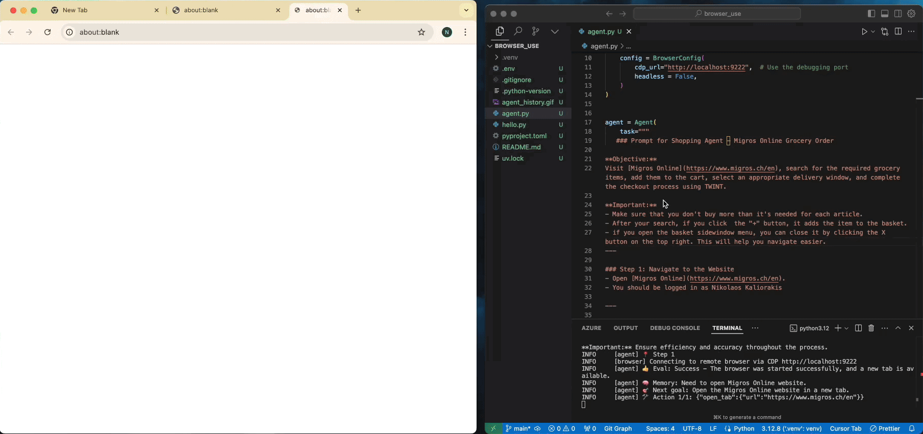 Browser Use works well for straightforward automation tasks and can complete multi-step workflows.