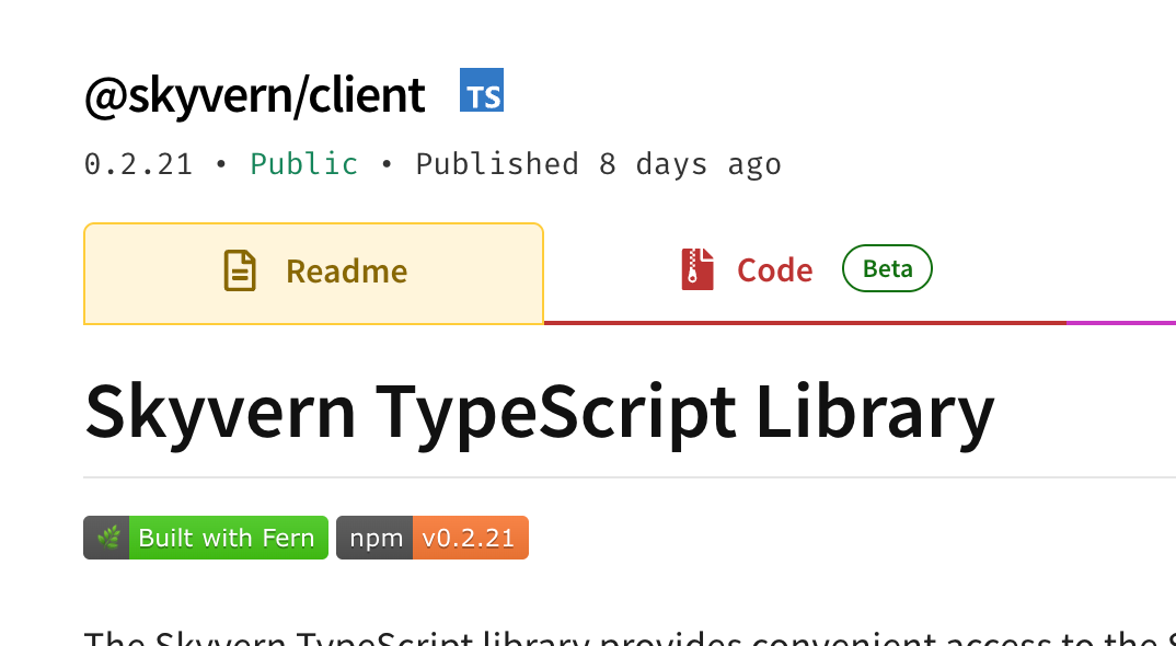 Skyvern just got a brand new SDK for all of our Typescript / Javascript friends out there. Don't waste your time doing custom http requests - npm install @skyvern/client instead!