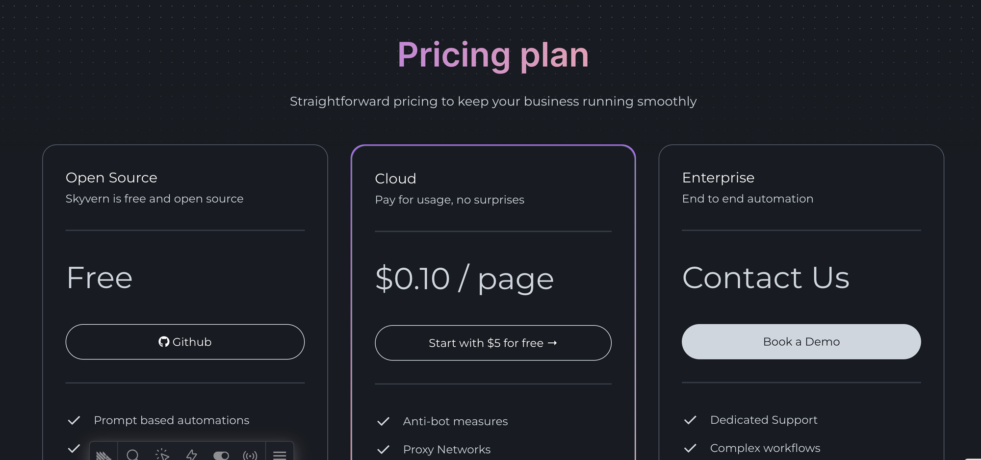 Skyvern's landing page just got a minor update – we now have a dedicated pricing page 💰!