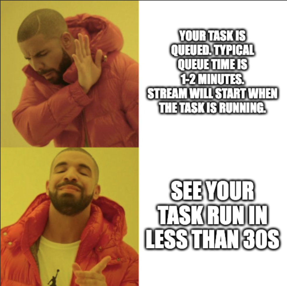 ⏲️ We just rolled out a huge change for our self-serve users. You'll now see your tasks start up WAY faster than before