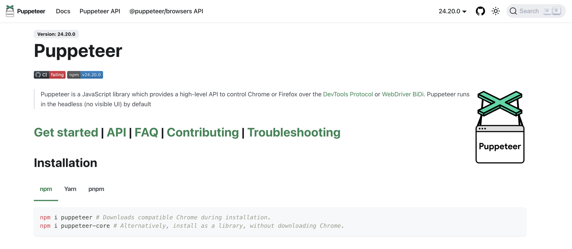 Installing Puppeteer with NPM
