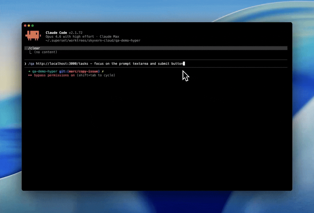 skyvern setup It reads your git diff, generates test cases, opens a browser, runs them, and gives you a PASS/FAIL table. The whole prompt is ~700 lines and open source: https://github.com/Skyvern-AI/skyvern/blob/main/skyvern/cli/skills/qa/SKILL.md