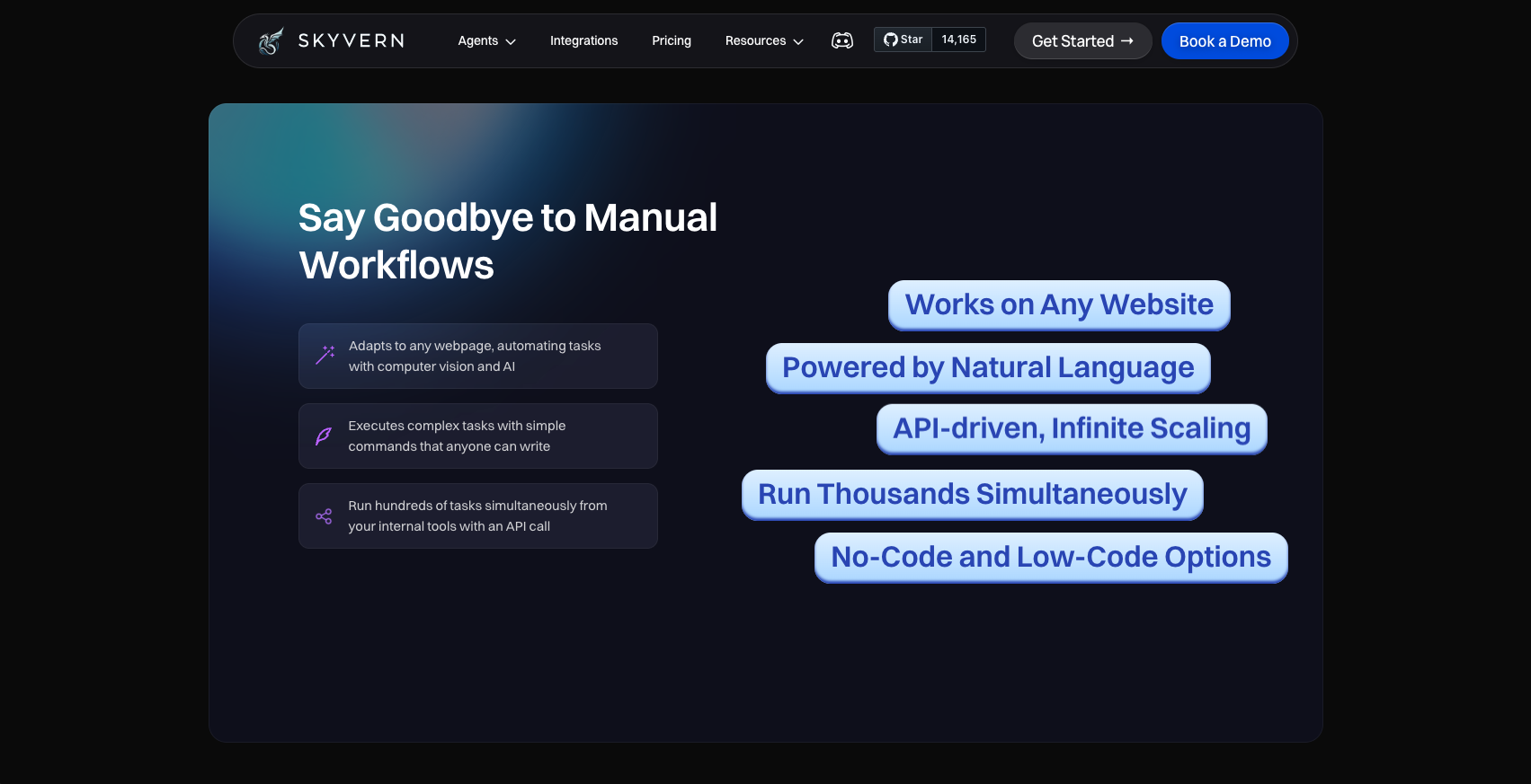 Skyvern helps companies automate browser-based workflows using LLMs and Computer Vision, fully automating manual workflows and replacing brittle or unreliable scripts. Built for enterprise needs, it provides API-first automation that adapts to websites without requiring custom coding for each site.