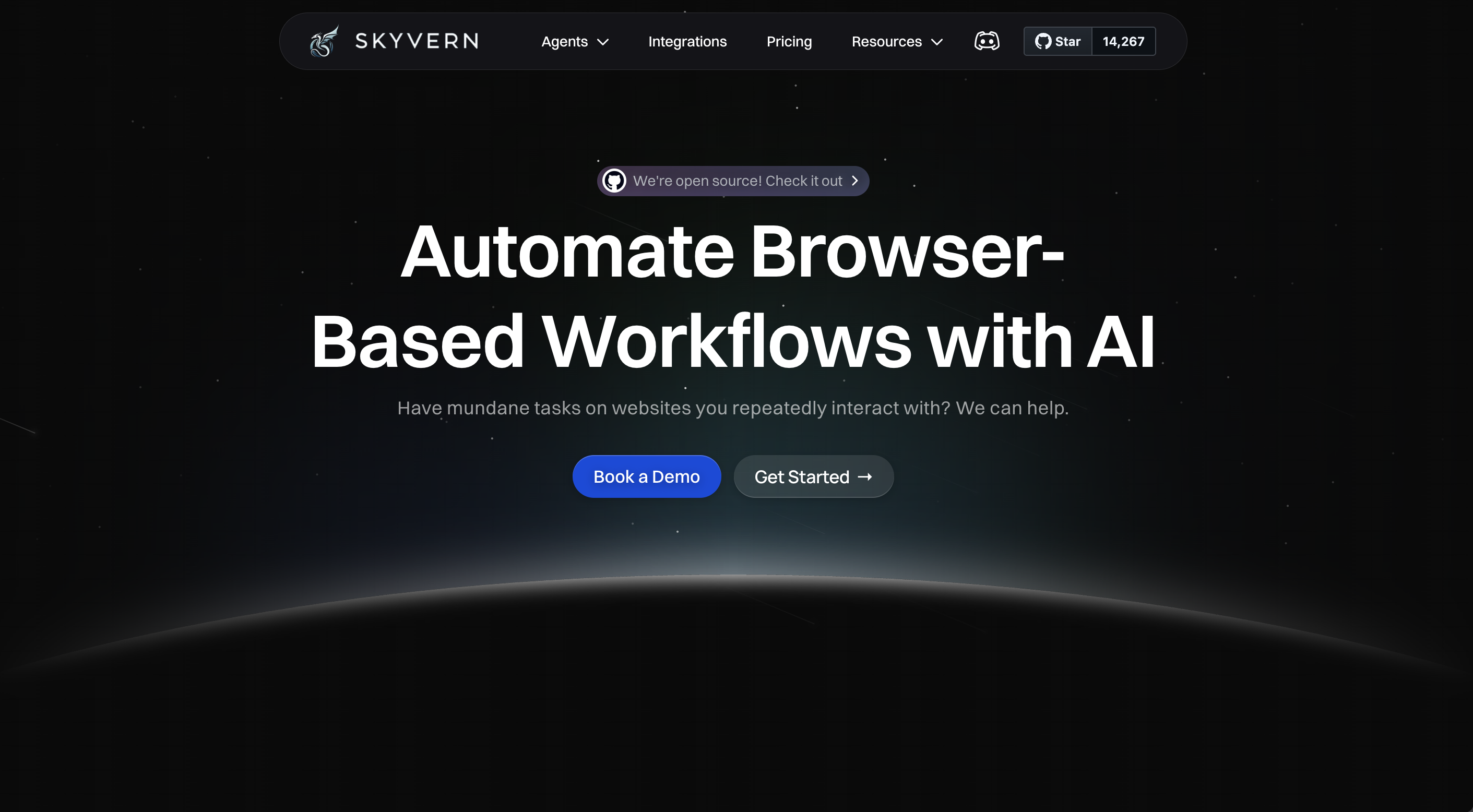 Skyvern automates browser-based workflows using LLMs and computer vision. Instead of requiring code-defined scripts, you just define workflow parameters like target websites, authentication credentials, and download preferences. Skyvern handles the execution through a single API call.