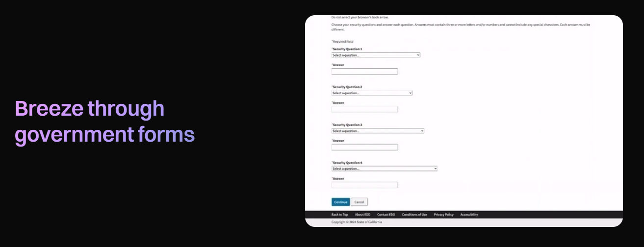 The system must handle form structures that change based on user responses. Government forms often include conditional logic where certain fields appear only after specific selections. Your automation needs to reason through these scenarios intelligently.