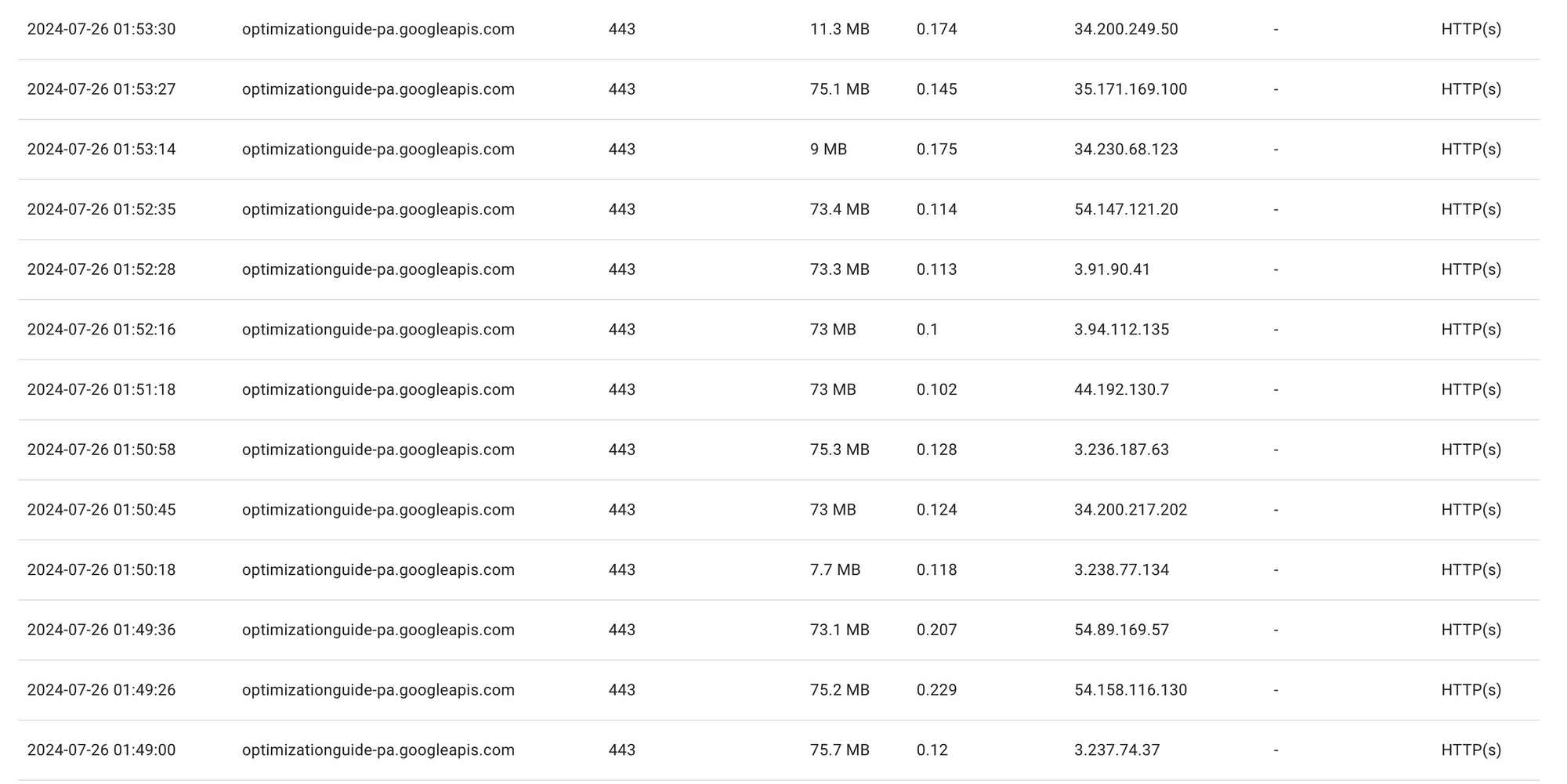 What's going on? Why is there a random call to optimizationguide-pa.googleapis.com11:05 occupying 70MB of bandwidth.. over and over and over again?