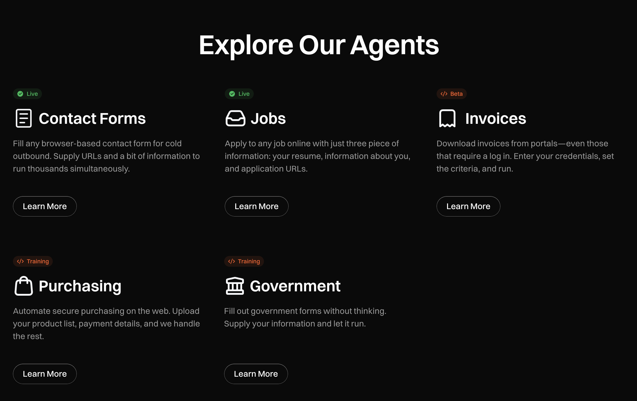Real-world use cases we see include automated form filling for government portals, invoice downloading from vendor sites, and complex procurement workflows across multiple supplier websites.