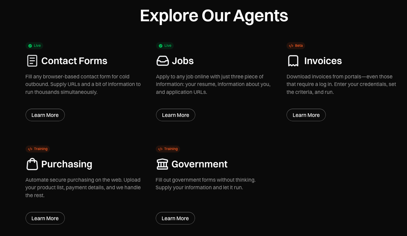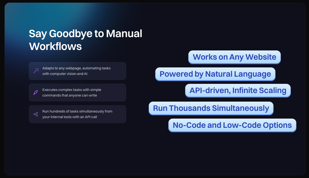 Our approach combines residential proxy features with computer vision and AI reasoning to overcome common automation challenges. When websites implement new anti-bot measures or change their layouts, traditional scripts break. But our system uses residential IPs to appear as legitimate users while using LLMs to understand and adapt to interface changes in real-time.