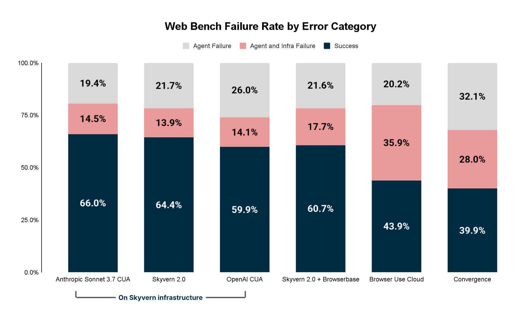 These findings imply that the browser infrastructure powering the agents is equally as important as the quality of the agent itself.