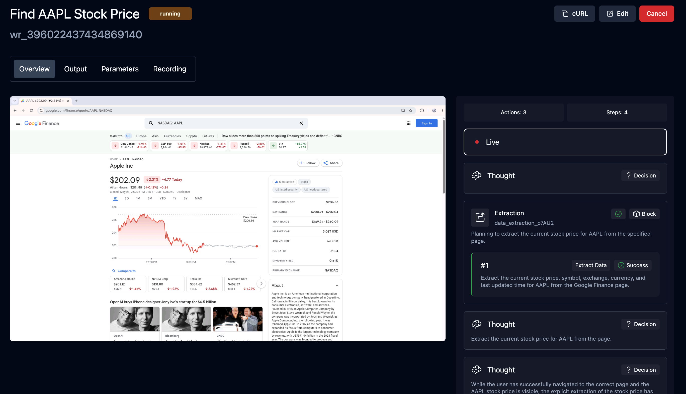 Navigate to the Hacker News homepage and get the top 3 posts.Go to google finance and find the "AAPL" stock price. COMPLETE when the search results for "AAPL" are displayed and the stock price is extracted.