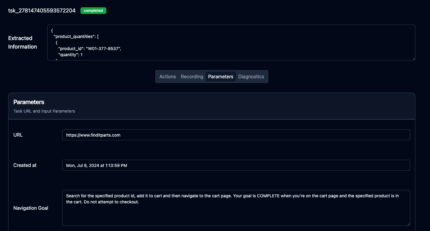 The task parameters are the inputs that you provided to Skyvern. This includes the URL, the extraction rules, and any other information that you provided to Skyvern.